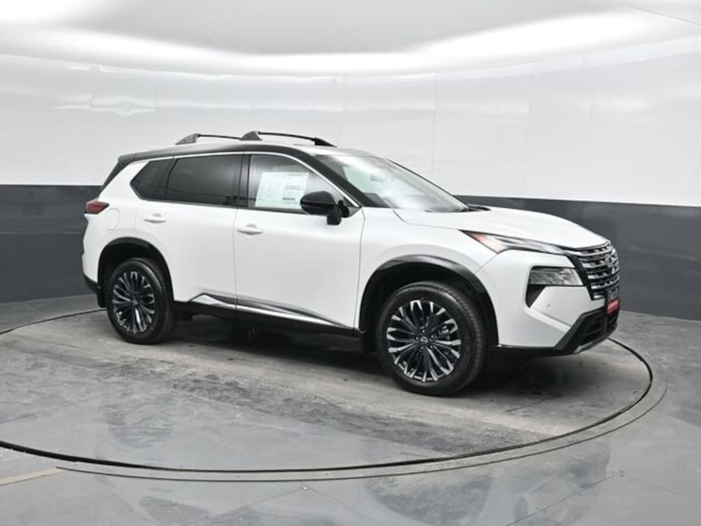 Everest White Pearl/Super Black 2026 Nissan Rogue Platinum AWD CVT with Xtronic 1.5L DOHC AWD.