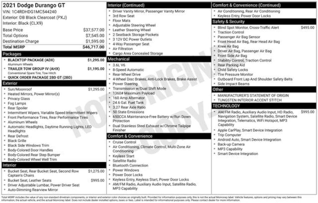 Whether you're tackling the daily commute, embarking on a family adventure, or towing your weekend toys, the 2021 Dodge Durango GT is the perfect companion. Its spacious and versatile interior, with seating for up to six passengers and ample cargo space, makes it a true multi-purpose SUV.