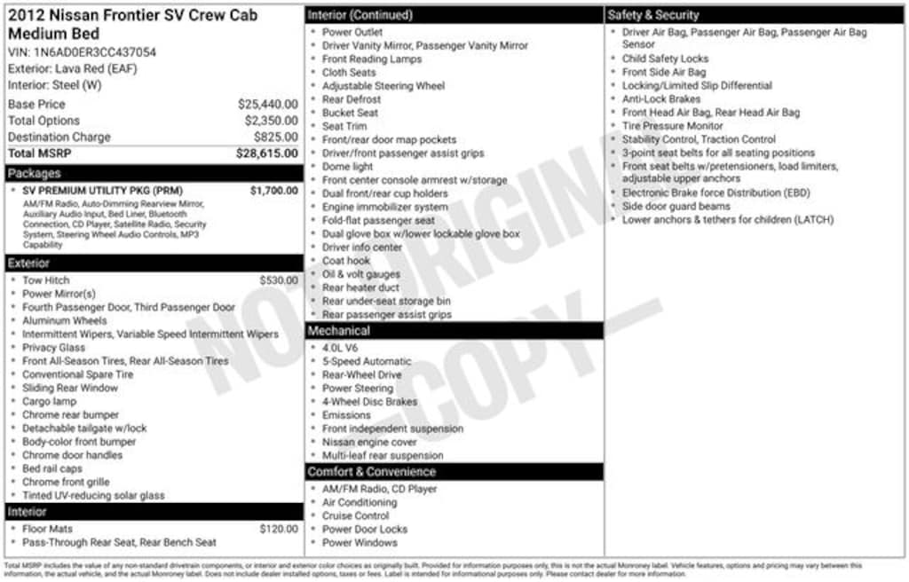 Used 2012 NissanFrontier SV V6 Crew Cab